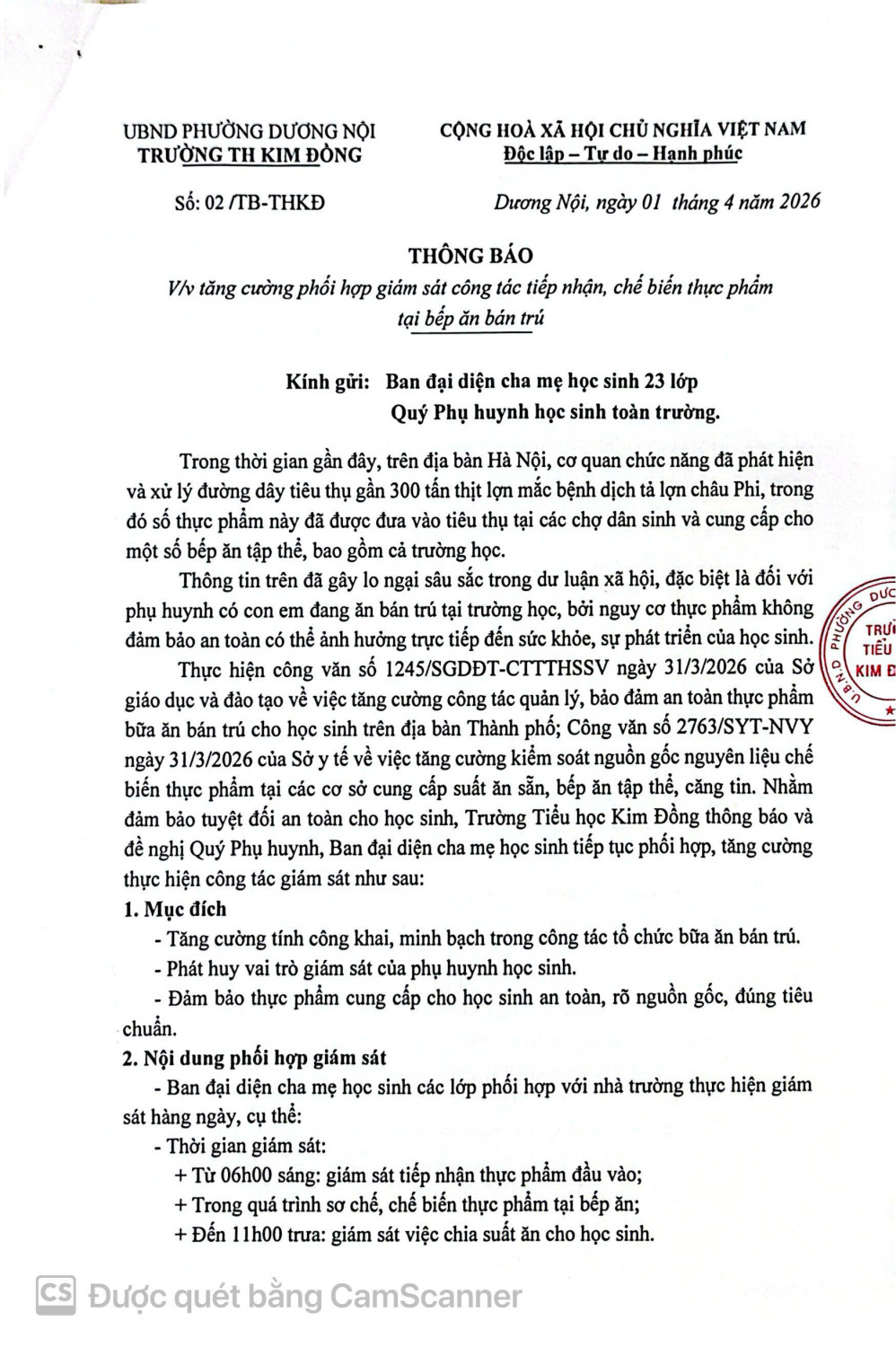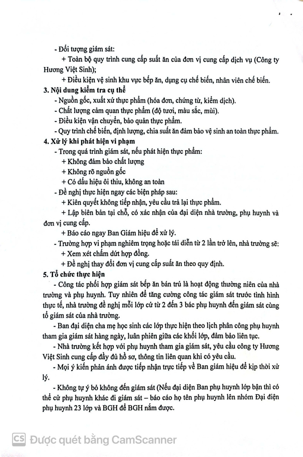 Tăng cường phối hợp giám sát công tác tiếp nhận, chế biến thực phẩm tại bến ăn bán trú
