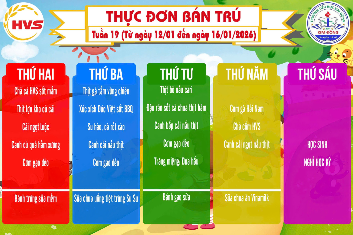 THỰC ĐƠN BÁN TRÚ TUẦN 19