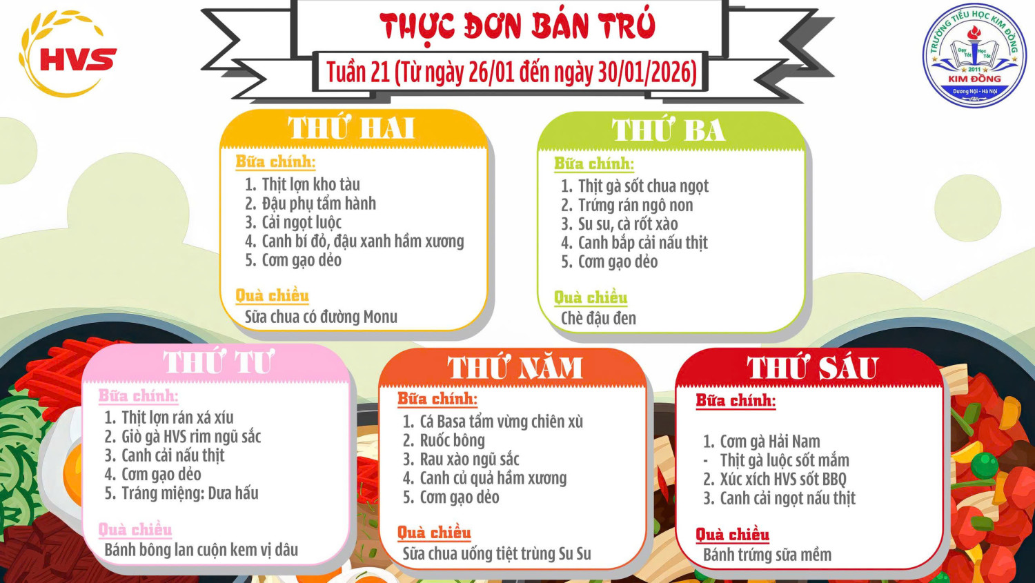 THỰC ĐƠN BÁN TRÚ TUẦN 21
