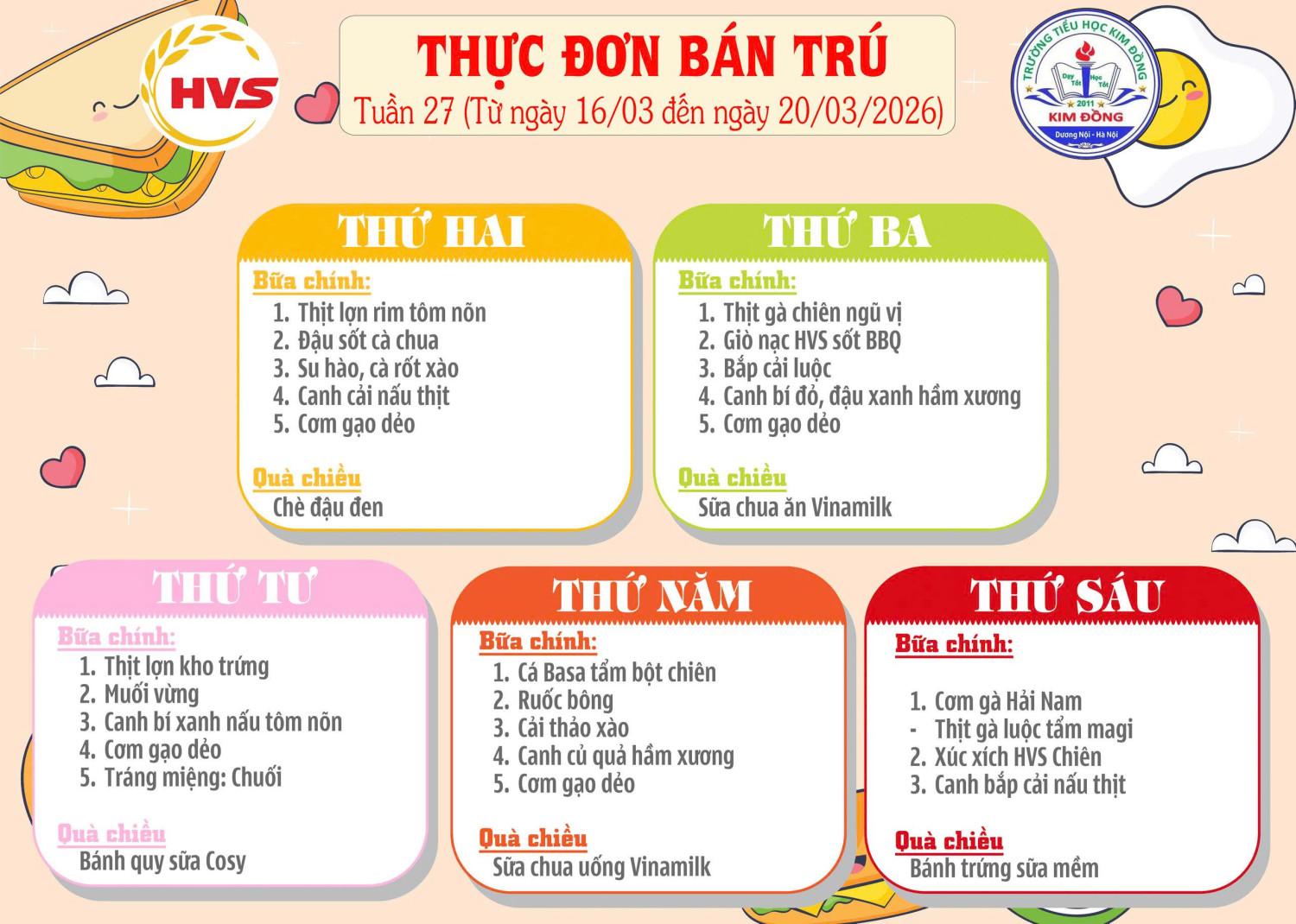 THỰC ĐƠN BÁN TRÚ TUẦN 27