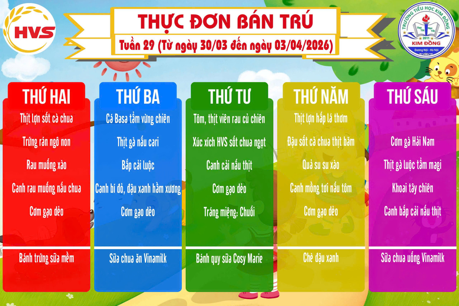 THỰC ĐƠN BÁN TRÚ TUẦN 29