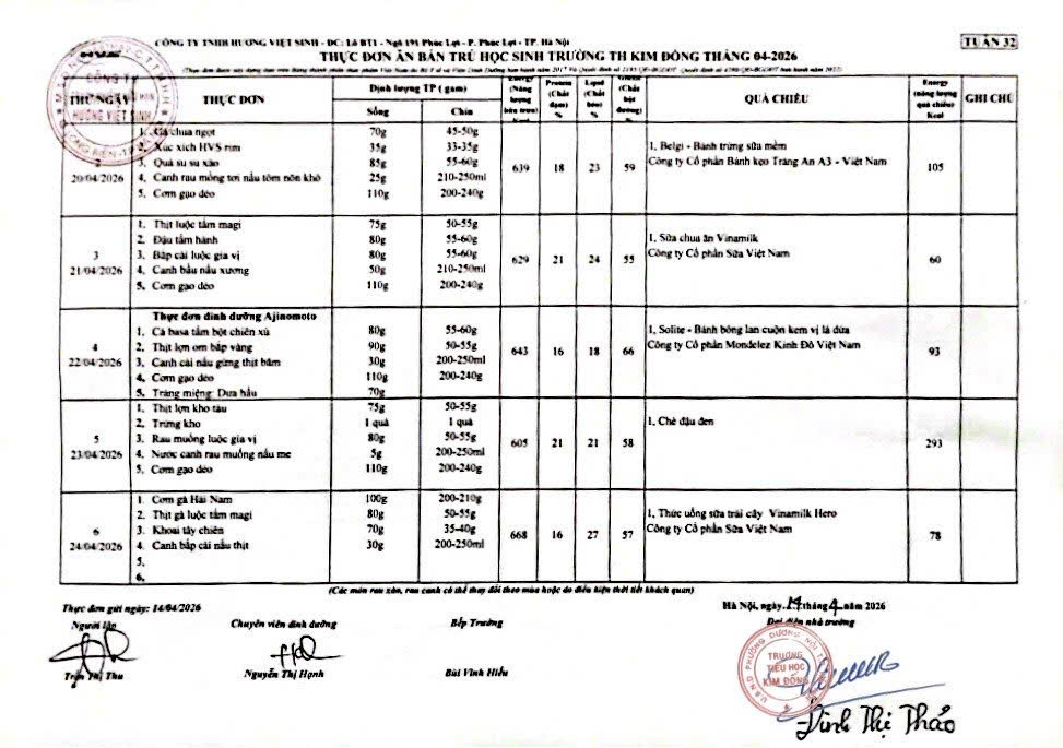 THỰC ĐƠN TUẦN 32