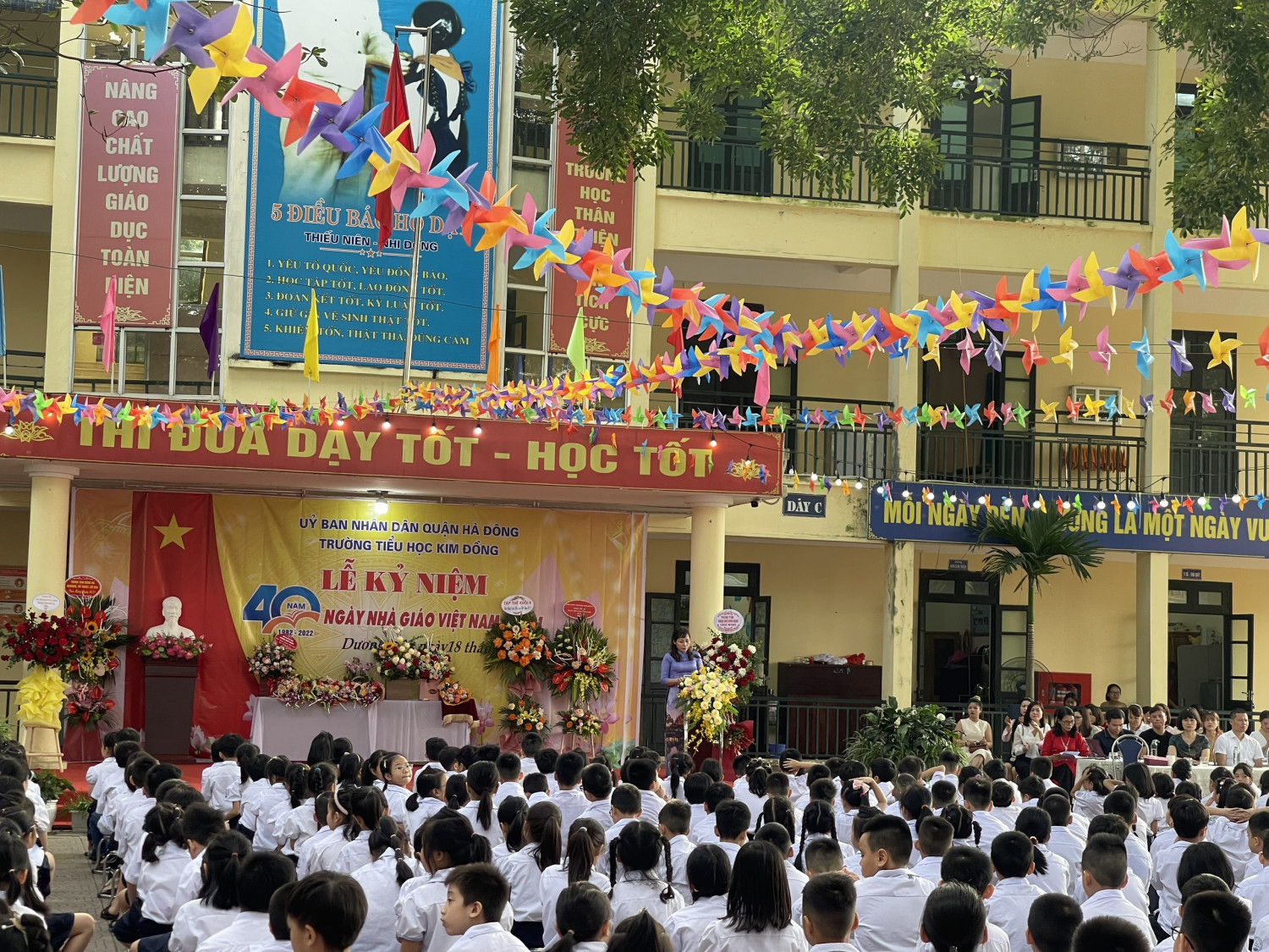 Nhân kỷ niệm 40 năm ngày nhà giáo Việt Nam 20.11 Trường Tiểu học Kim Đồng đã trang trọng tổ chức Mít tinh kỷ niệm 40 năm ngày Nhà giáo Việt Nam 20/11/1982-20/11/2022. Đại diện các cơ quan đối tác của trường,các thế hệ thầy cô giáo đã nghỉ hưu cùng các bậc cha mẹ học sinh đã tới chúc mừng